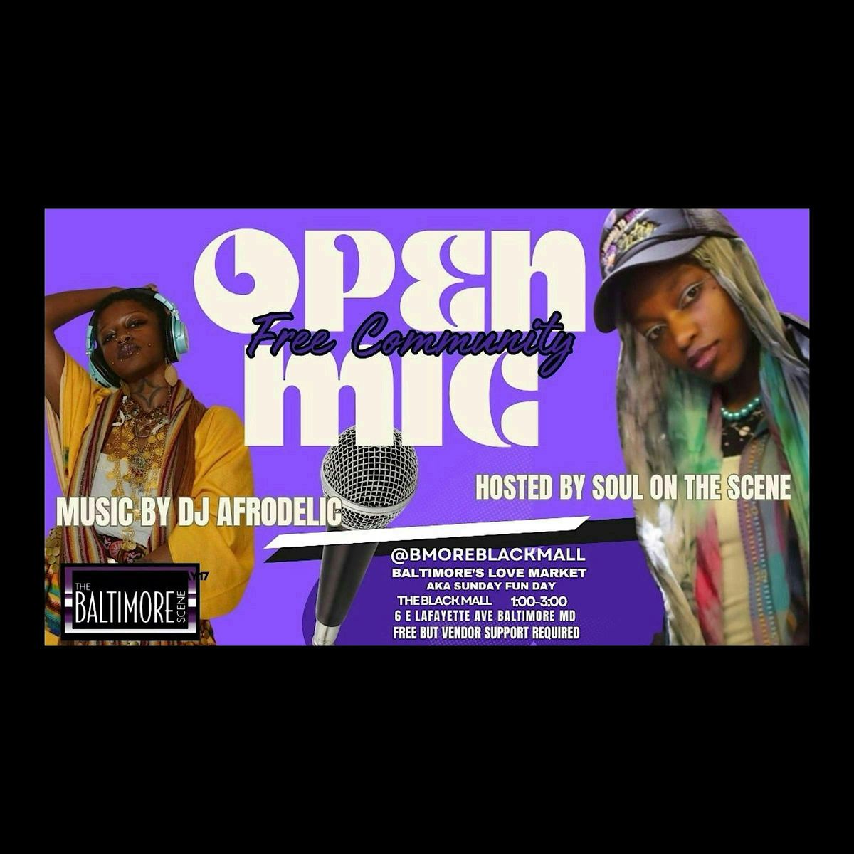 ---it's FREE we just ask that while there to- please support the vendors at Our Two Floor Black Mall/ Bmore's Love Market where the open mic is housed.