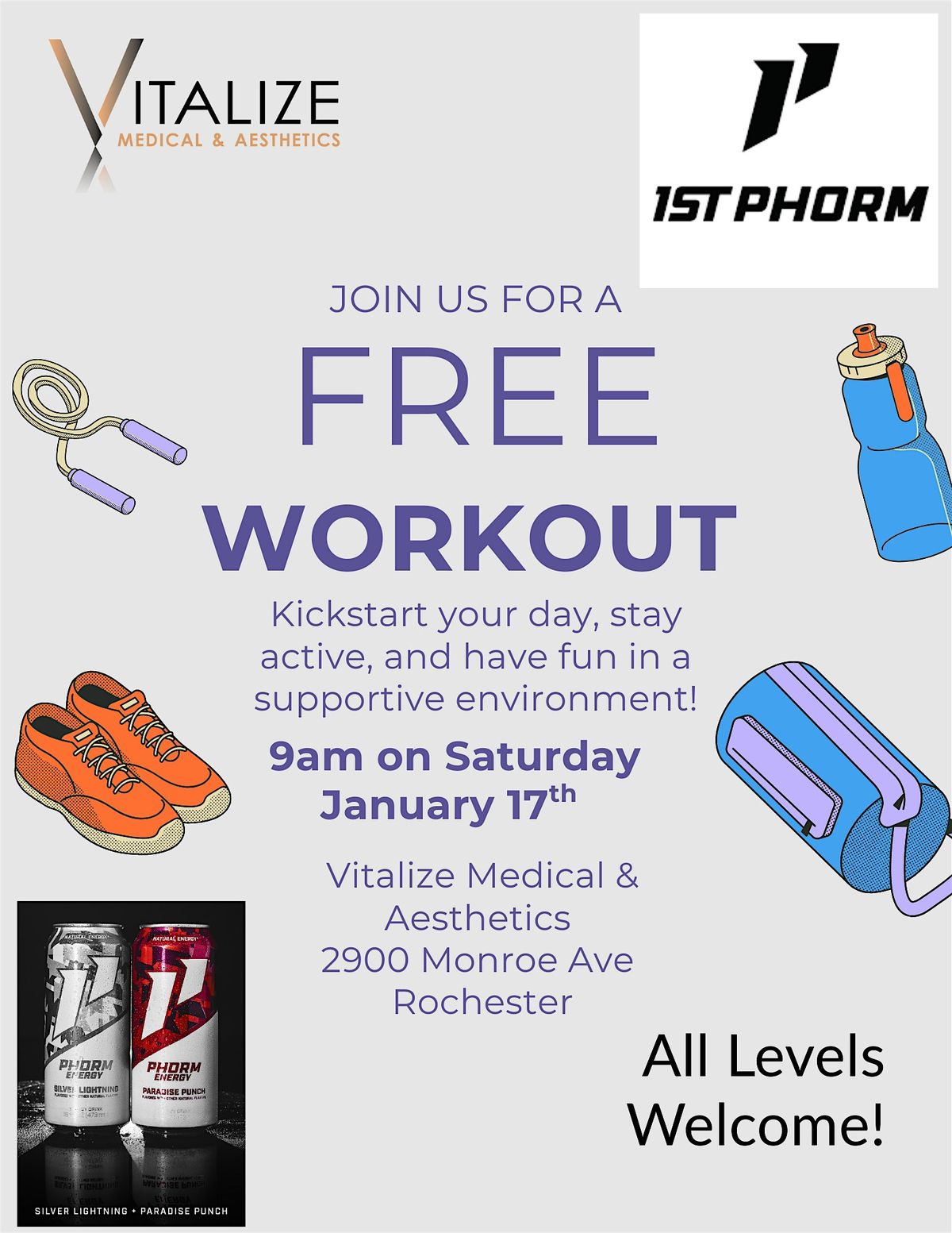 Ready to sweat it out with the community? All levels are welcome to join our free workout session - let's get fit together!