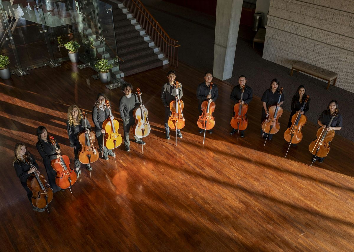 CSUF’s Cello Choir, founded and directed byBongshin Ko, is recognized for its wide-rangingr epertoire and dynamic ensemble work. Since its founding in 2001, the ensemble has toured internationally to Germany, France, and South Korea, and has appeared at numerous prestigious venues and musical events, including Carnegie Hall, Alice Tully Hall at Lincoln Center, the United Nations Headquarters, Kaufman Center (NYC), Seoul Arts Center (South Korea), the Chamber Music Society of Lincoln Center, the American String Teachers Association National Conference, Summit New York, the Hawaii Performing Arts Festival, the Orange County Performing Arts Center, the Richard Nixon Presidential Library & Museum, and special events such as Judge Judy’s Birthday Concert and the Silva Centennial & Greenhouse Celebrations inNorth Carolina. In Germany, the ensemble has performed at the Mozart Konzertakademie and HfDMK (Hochschule für Musik und Darstellende Kunst). Alumni and current members have gone on to receive scholarships and honors from leadinginstitutions and programs including the Heifetz Institute, The Juilliard School, Peabody Institute, New England Conservatory, Michigan Honor Auditions, the ASTA LA Finals Grand Prize, theCSUF Concerto Competition Grand Prize, the Norman Family Cello Scholarship, Bein & Fushi, Dr. C. Baker, Concert World, and numerous international music festival scholarships across Europe and the Far East.