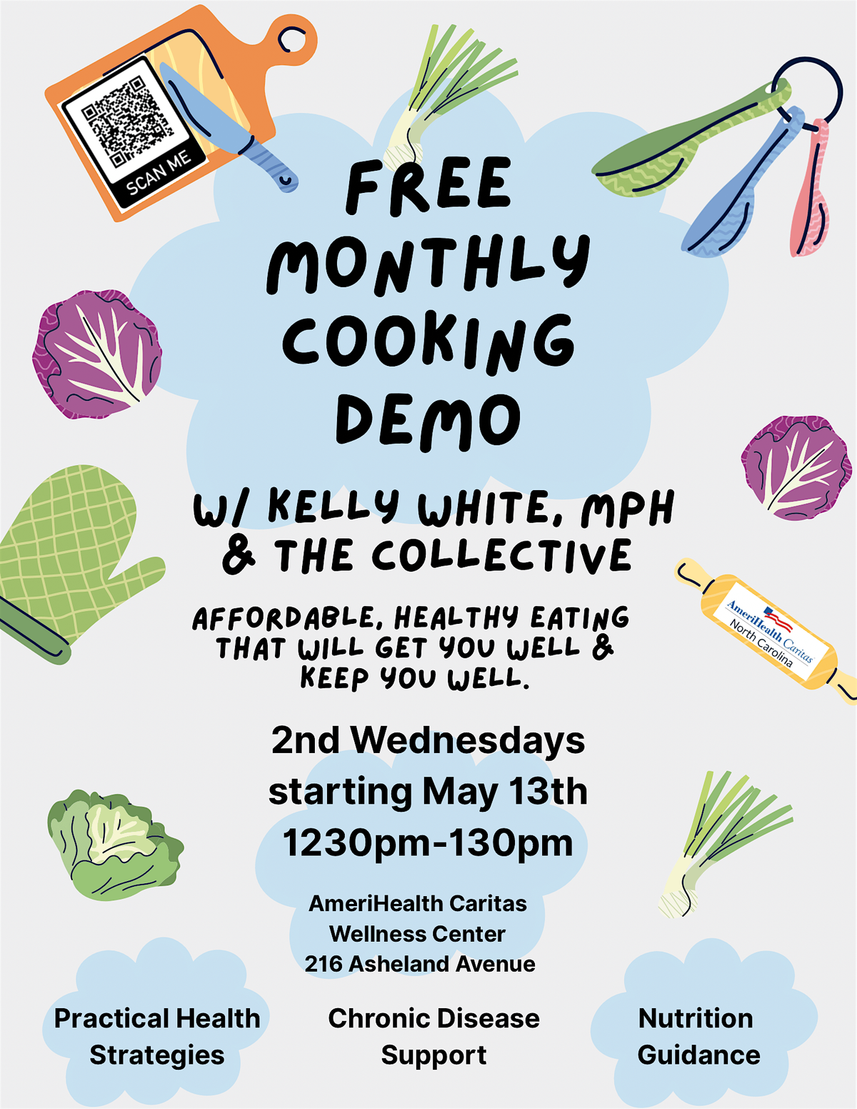 Join Kelly White, MPH, Executive Director of local non-profit Community Health & Wellness Collective Services (The Collective), for monthly cooking demonstrations at AmeriHealth Caritas Wellness & Opportunity Center.