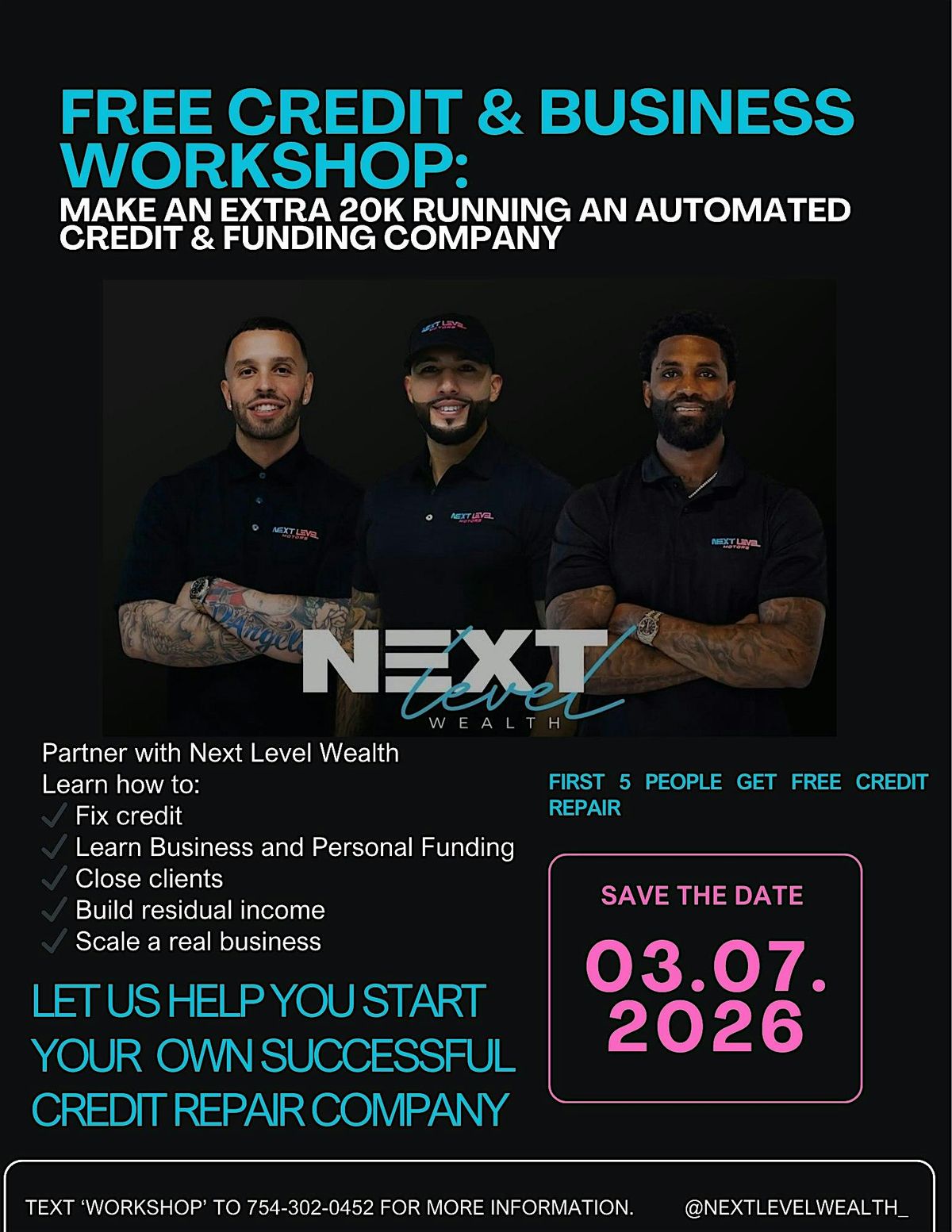 PARTNER WITH NEXT LEVEL WEALTH AND LEARN HOW TO START YOUR OWN SUCCESSFUL CREDIT REPAIR BUSINESS.About this Event