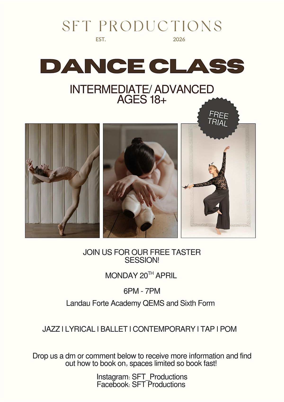 Join us for our free dance taster session. Whether you’re looking to reconnect with dance, get some extra training or have fun - this is the perfect opportunity!