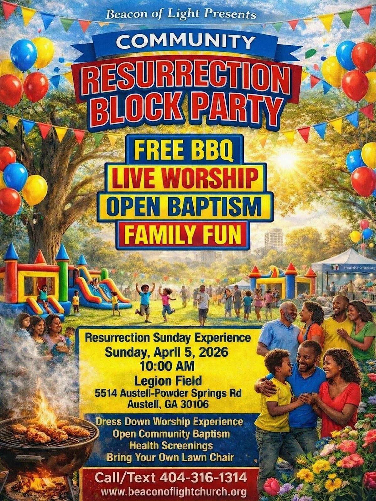 Join Beacon of Light Christian Church for one of the biggest Easter celebrations in Austell, GA! This FREE event is designed to empower, uplift, and bring people together in a day of faith, family, and fellowship.