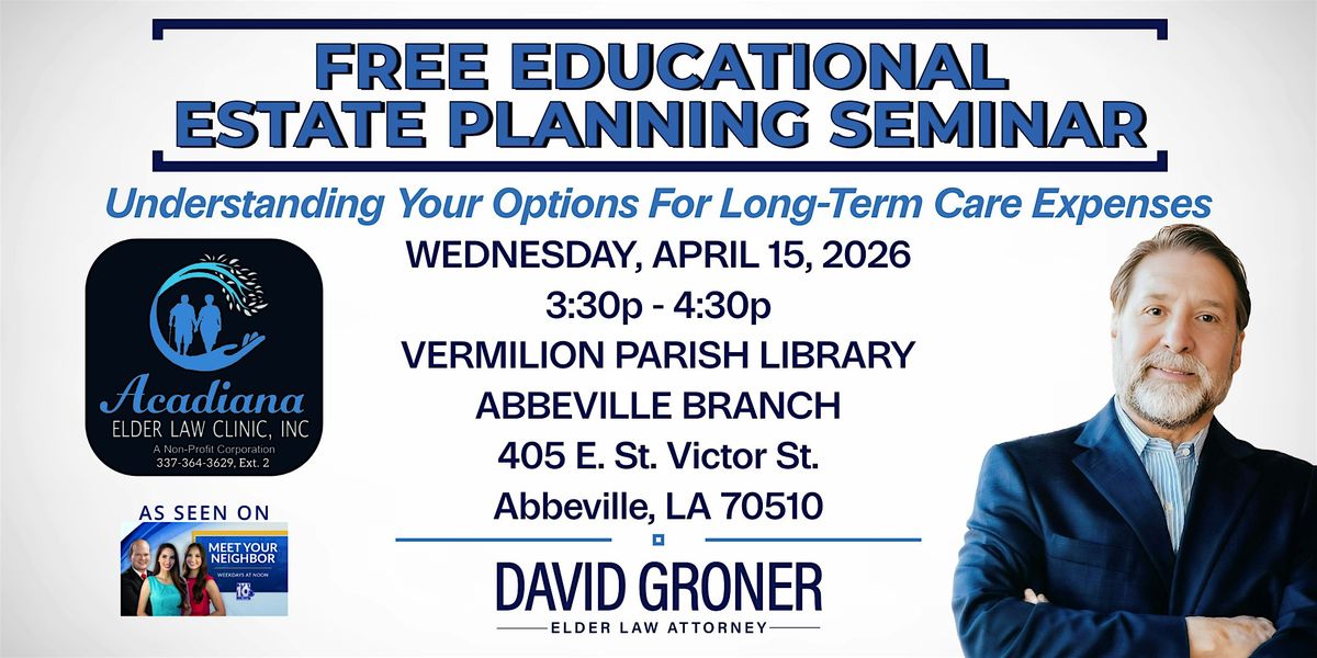 Join us for a free educational estate planning seminar in Abbeville, LA on Wednesday, April 15, 2026 - don't miss out!About this Event