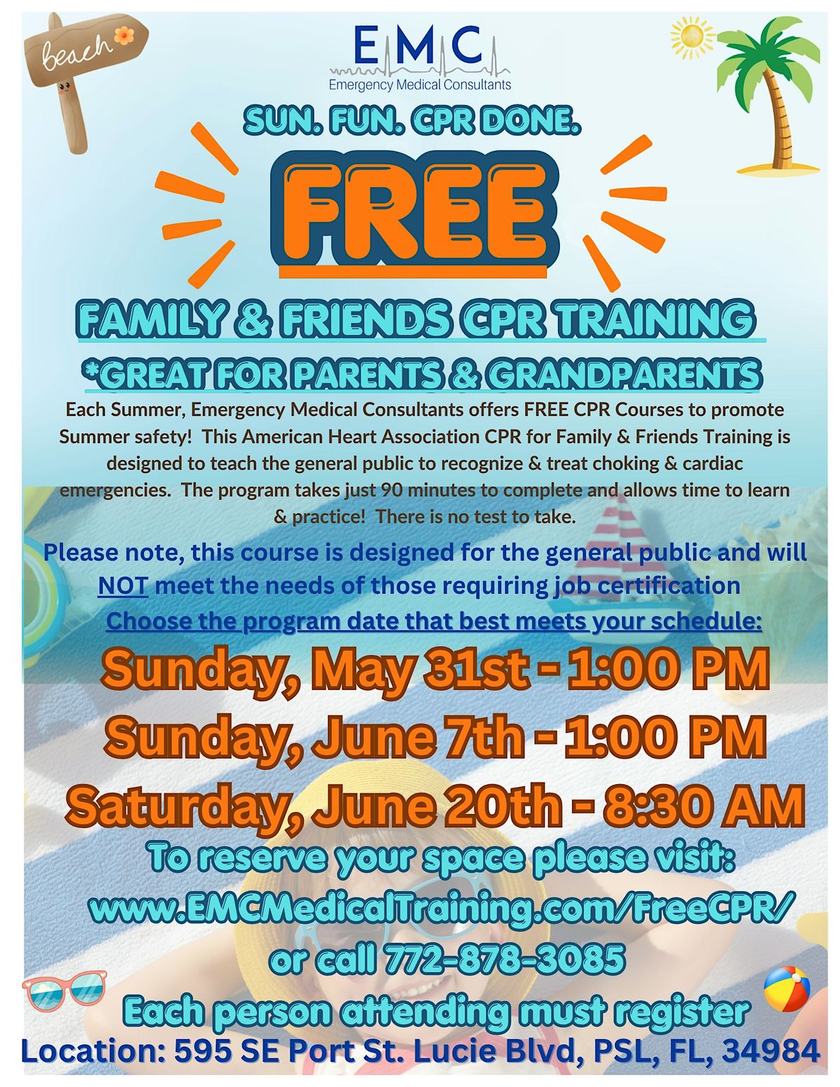 FREE Family & Friends CPR Training with Emergency Medical Consultants