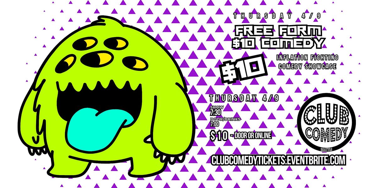 Free Form $10 Comedy at Club Comedy Seattle 4/9 7:30PM
