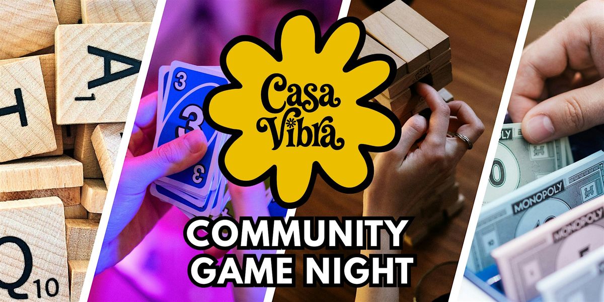 Hey there! Join us for a super fun Community Game Night at Casa Vibra. It's the perfect chance to hang out, meet awesome people, and dive into some exciting board games and card challenges. We've got plenty of board games, but bring your faves if you want!