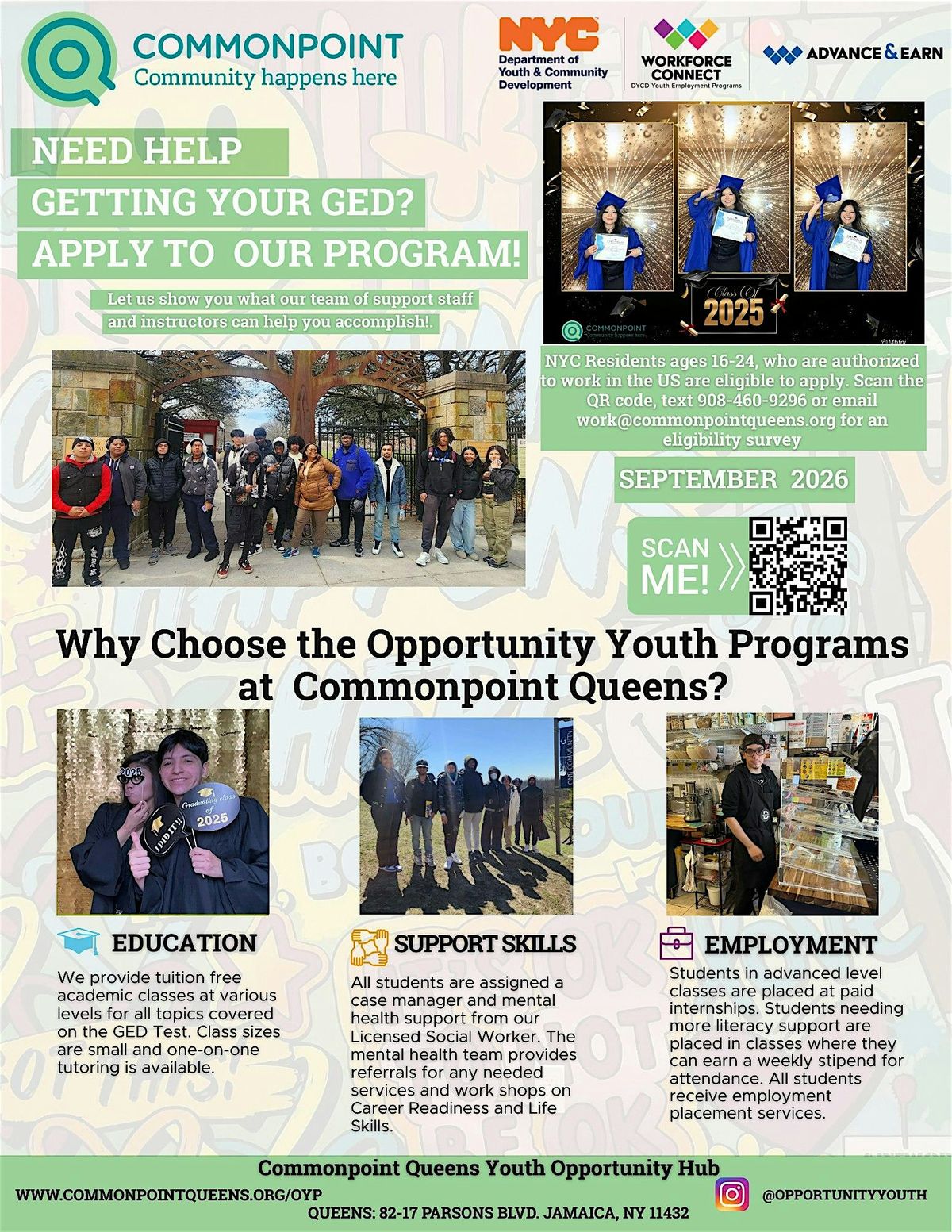 Free GED certifications for ages 16–24 at Commonpoint in Queens NYC. Classes start September 2026.