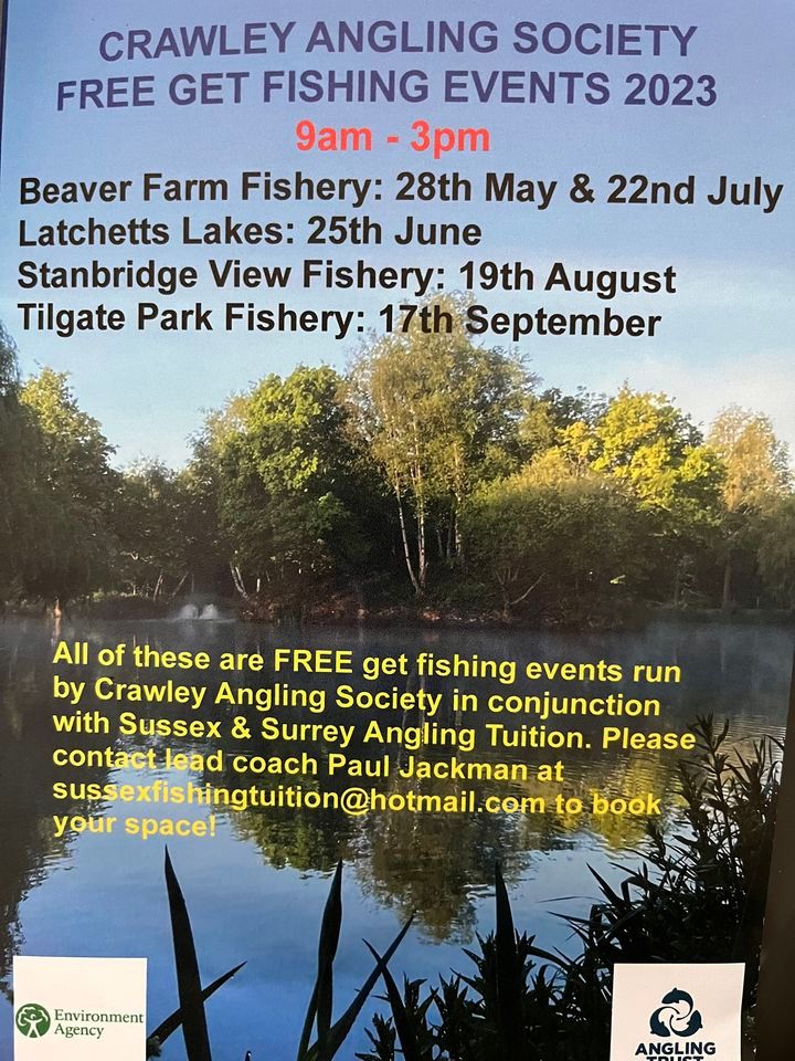 Free get fishing event run in conjunction with crawley angling society and the angling trust. Contact me to book your space.