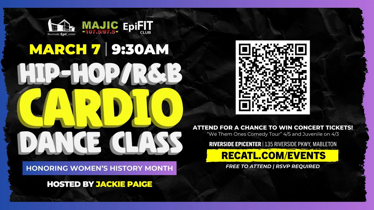 Join us Saturday, March 7th at 9:30 AM inside EpiFIT Club at Riverside EpiCenter for a high-energy Hip-Hop & R&B Cardio Dance Class led by the incredible Jackie Paige. Whether you're a seasoned dancer or just showing up for the vibes, this class is for you.