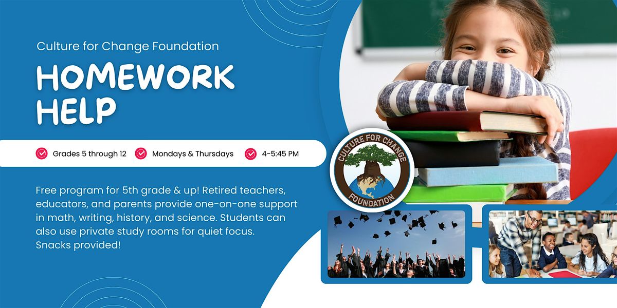 Join us for Homework Help, a welcoming and supportive program designed to help students succeed academically! We bring together a team of retired teachers, experienced educators, and dedicated community volunteers—including stay-at-home parents—who are ready to provide one-on-one assistance in math, writing, history, science, and more.