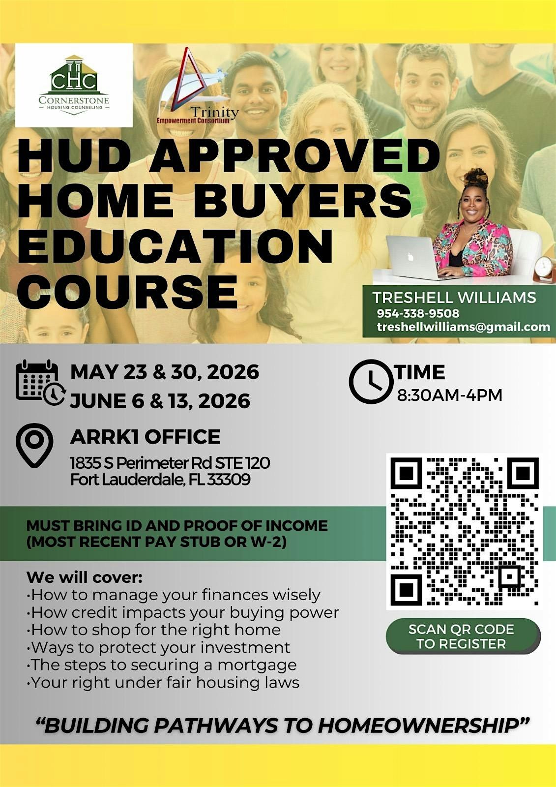 Upon completion of this course and a required one-on-one meeting with a HUD-approved housing counselor, attendees will receive an 8-hour Homebuyer Education Certificate. This certification is required by most lenders to qualify for down payment assistance programs, grants, and other homeownership incentives.