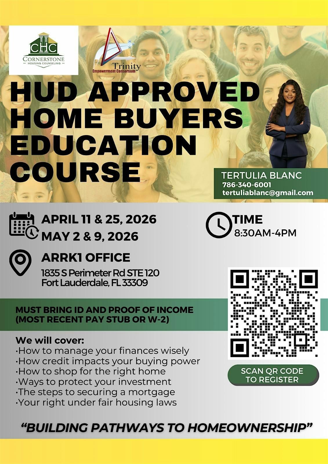 Join us for a comprehensive 8-Hour HUD-Approved Homebuyer Education Course designed to guide you step-by-step through the entire homebuying process. This workshop is perfect for first-time buyers and anyone planning to purchase using down payment assistance programs or grants.