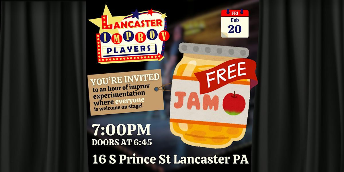 Whether you’ve never been on stage or you’ve been in 100 improv shows, Lancaster Improv Players would love to jam with you! This jam is FREE to attend and is intended to bring together all lovers of improv for an hour of fun. All attendees will be welcome to participate in warmups and 2-3 person scenes at our theater space at 16 South Prince. Jams are an ideal place to meet and perform with new improvisers, so we hope you come out!