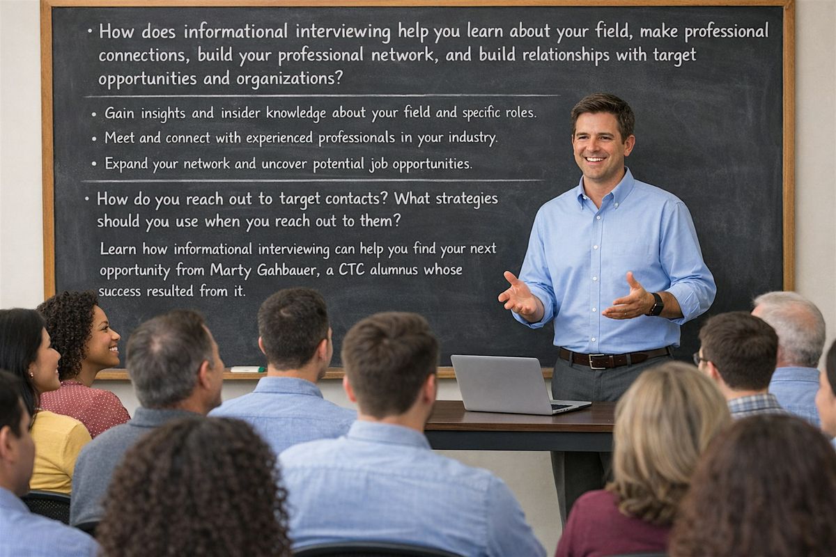 How do you reach out to target contacts? What strategies should you use when you reach out to them?Learn how informational interviewing can help you find your next opportunity from Marty Gahbauer, a CTC alumnus whose success resulted from it.