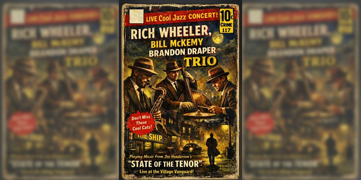 The elite “chordless” trio of Rich Wheeler (tenor sax), Bill McKemy (double bass), and Brandon Draper (drums) comes together to celebrate the music and lasting impact of Joe Henderson’s classic Blue Note release, "State of the Tenor: Live at the Village Vanguard'. This grouping of instruments allows for expansive and fresh trio interaction that is in turns introspective, intense and unpredictable.