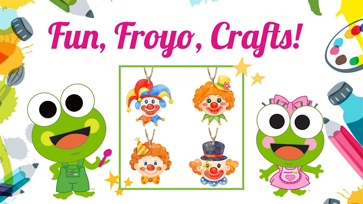 Stop in anytime 12pm-9pm with your little froggers to pick up a Free Wooden Clown Craft Kit. (while supplies last). They can color their clown while enjoying some Froyo, or take it home to decorate!