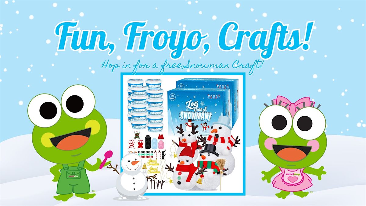Hop into sweetFrog on January 12th anytime 12pm-9pm with your little froggers to pick up a FREE Make-A-Snowman craft kit (while supplies last).