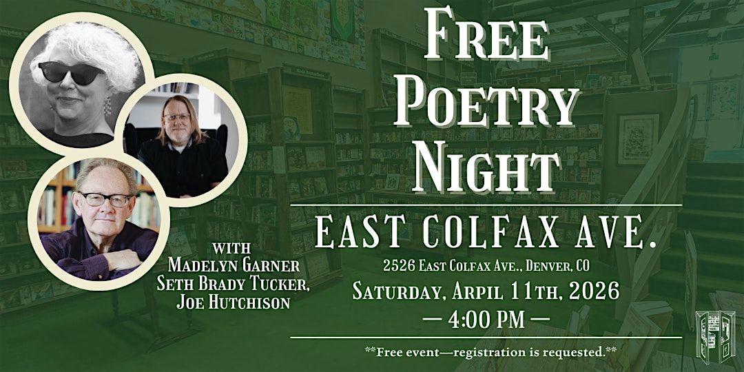 Join us for an inspiring poetry reading with three local poets: Madelyn Garner, Seth Brady Tucker, and Joe Hutchison on Saturday, April 11th at 4:00 PM at our Colfax location!