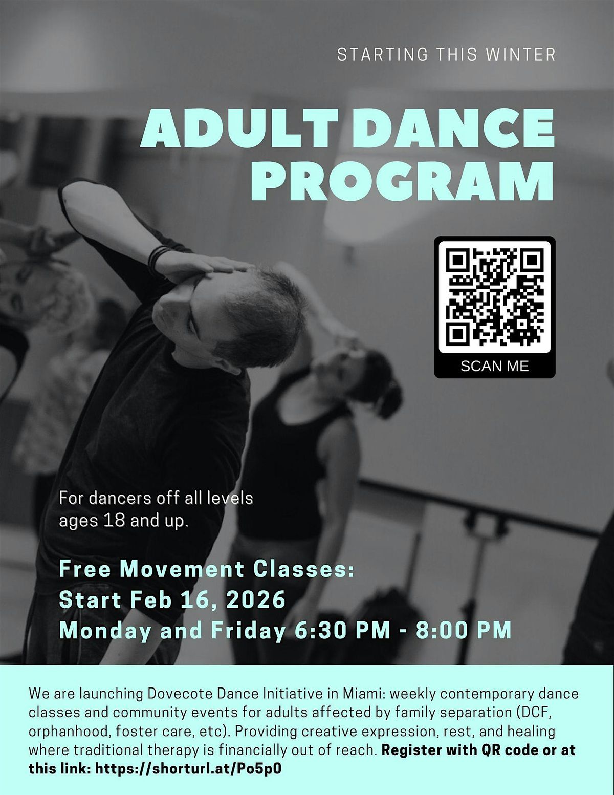 Are you an adult who has been affected by the child welfare system or family separation? Do you sometimes find it hard to cope with your past, or relate to others, or even…to “adult” properly? Dovecote Dance is a community program designed for you and people like you. We offer free movement classes at no cost as a means of building community, improving mental health, and providing a space for expression, rest, and healing. No prior dance experience required. Bring yourself and bring your baggage too 'cause we’re letting it loose! Register today to reserve a spot: https://shorturl.at/Po5p0