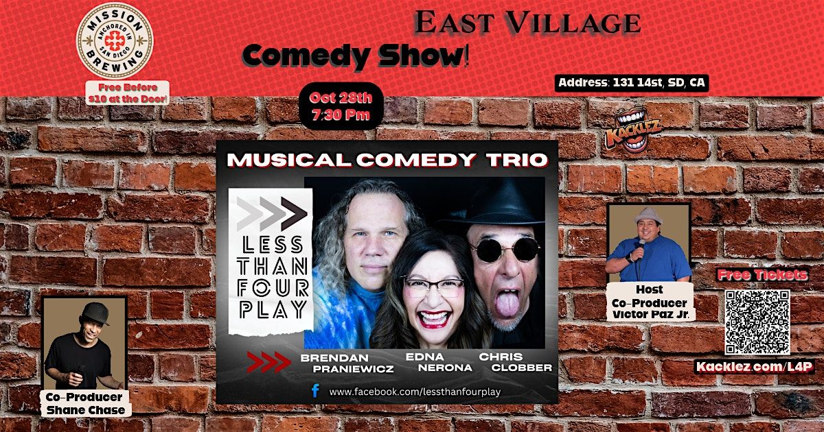 We have a great night of comedy with Less than Four Play headlining in a Musical sing along night!