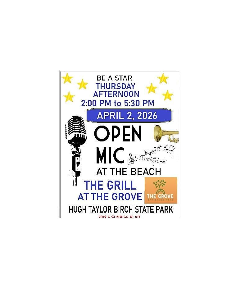 Free OPEN MIC at the beach. The Grill at the Grove in Birch State Park