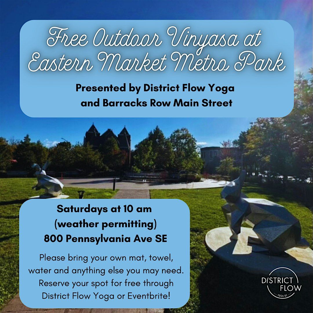 District Flow Yoga and Barracks Row Main Street have partnered once again to offer FREE Outdoor Vinyasa at Eastern Market Metro Park!