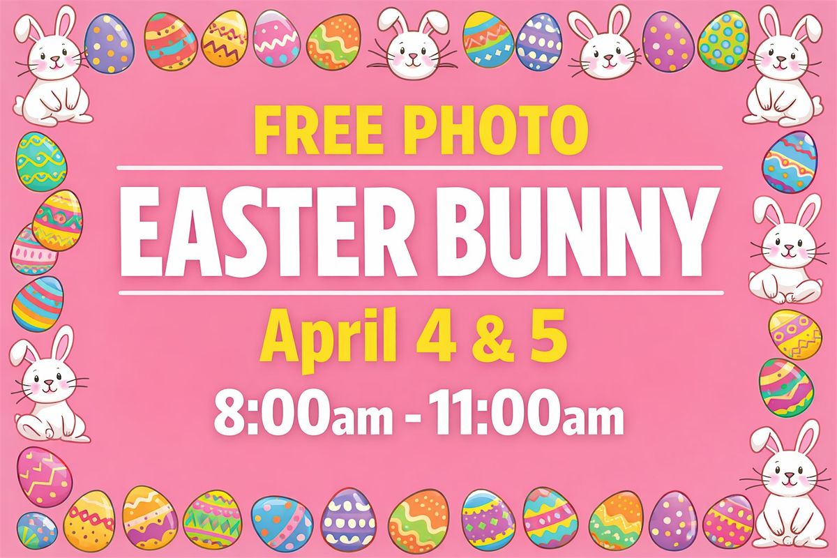 Bring your camera and the little ones to see the Easter Bunny! Your photos are taken by you with your camera.