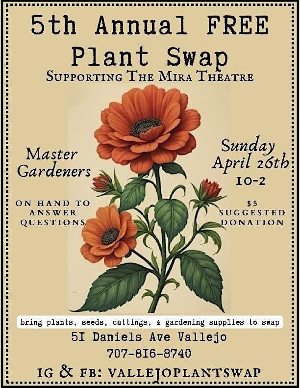 Join Mira theaters 5th Annual Plant Swap! Free to attend — bring plants to share or just come grab some to take home. Music and plants!
