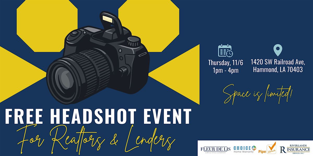 Get camera-ready before the busy holiday season! Join us for a FREE Headshot Event exclusively for Realtors and Lenders, hosted by Fleur De Lis Law & Title Company, Choice Home Warranty, PipeCheck, and Riverlands Insurance Company.