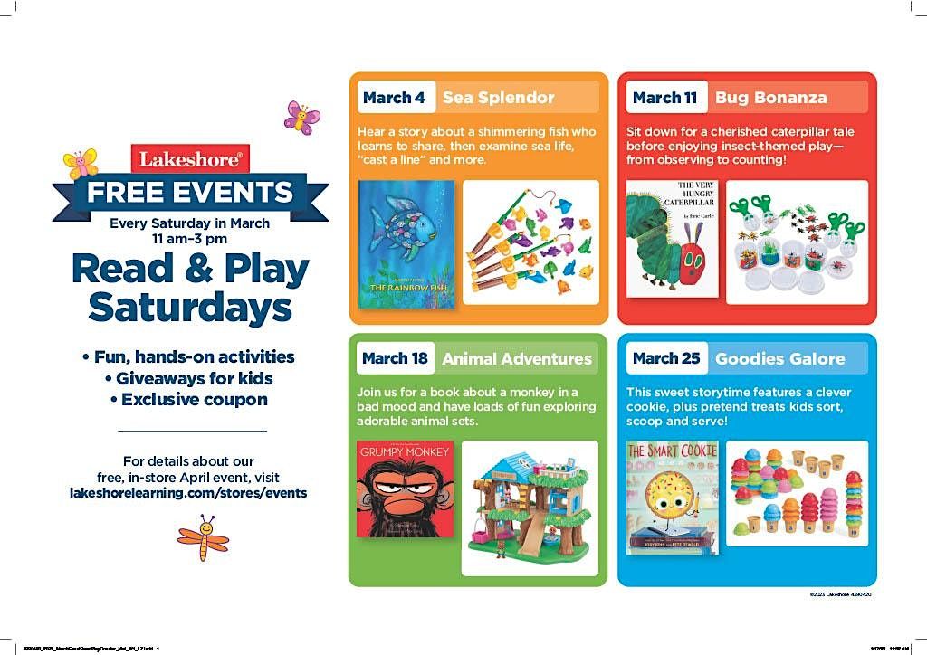 Lakeshore's Read and Play SaturdaysFree Events for Kids, Ages 3 and up