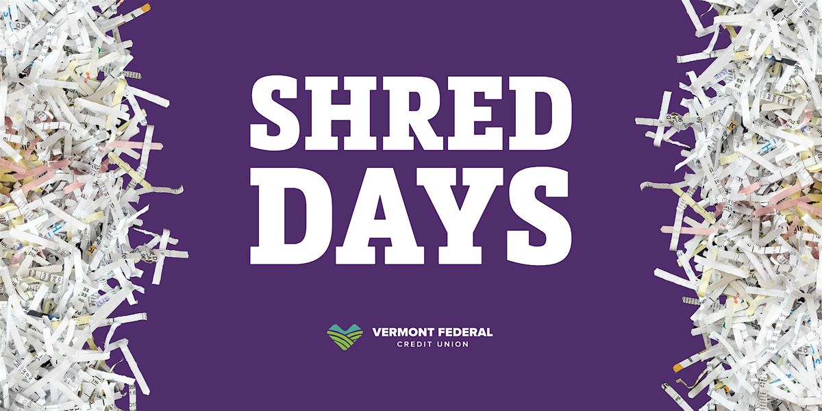 Mark your calendars for Vermont Federal Credit Union’s FREE Shred Day with SecurShred! Swing by our St. Albans Branch at 55 Old Orchard Road on April 11th from 9:00 AM - 12:00 PM