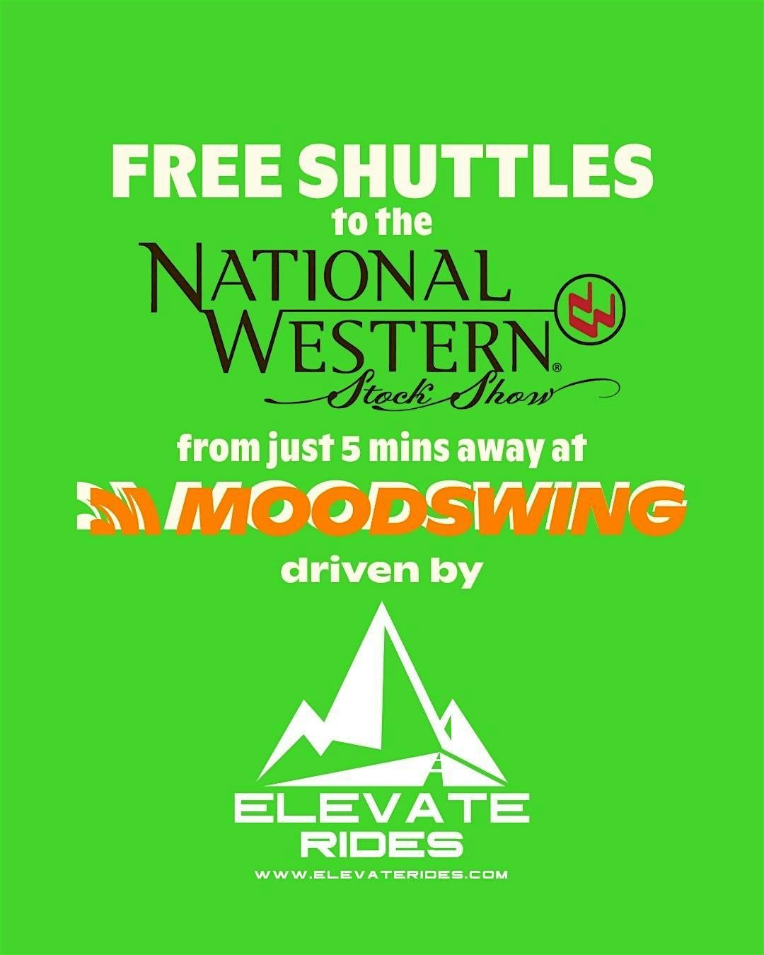 Hop on our free shuttle and enjoy an easy ride straight to the National Western Stock Show! No need to worry about parking or traffic—just relax and soak up the fun. Plenty of lot and street parking at Moodswing, and a snazzy Elevate Rides shuttle running on the below schedule from 3-9:15pm -
