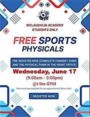 McLaughlin Academy is proud to host a Free Sports Physical Event to support the health and athletic readiness of our student-athletes! This initiative is part of our ongoing commitment to student wellness and community engagement, ensuring every child has the opportunity to participate in school sports safely and confidently.