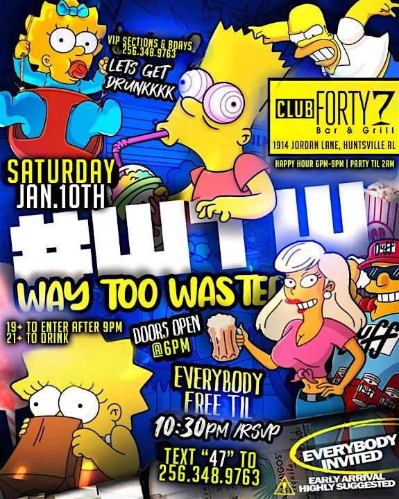 FREE TICKETS for WAY TOO WASTED Saturday @ CLUB47 | JAN 10TH
