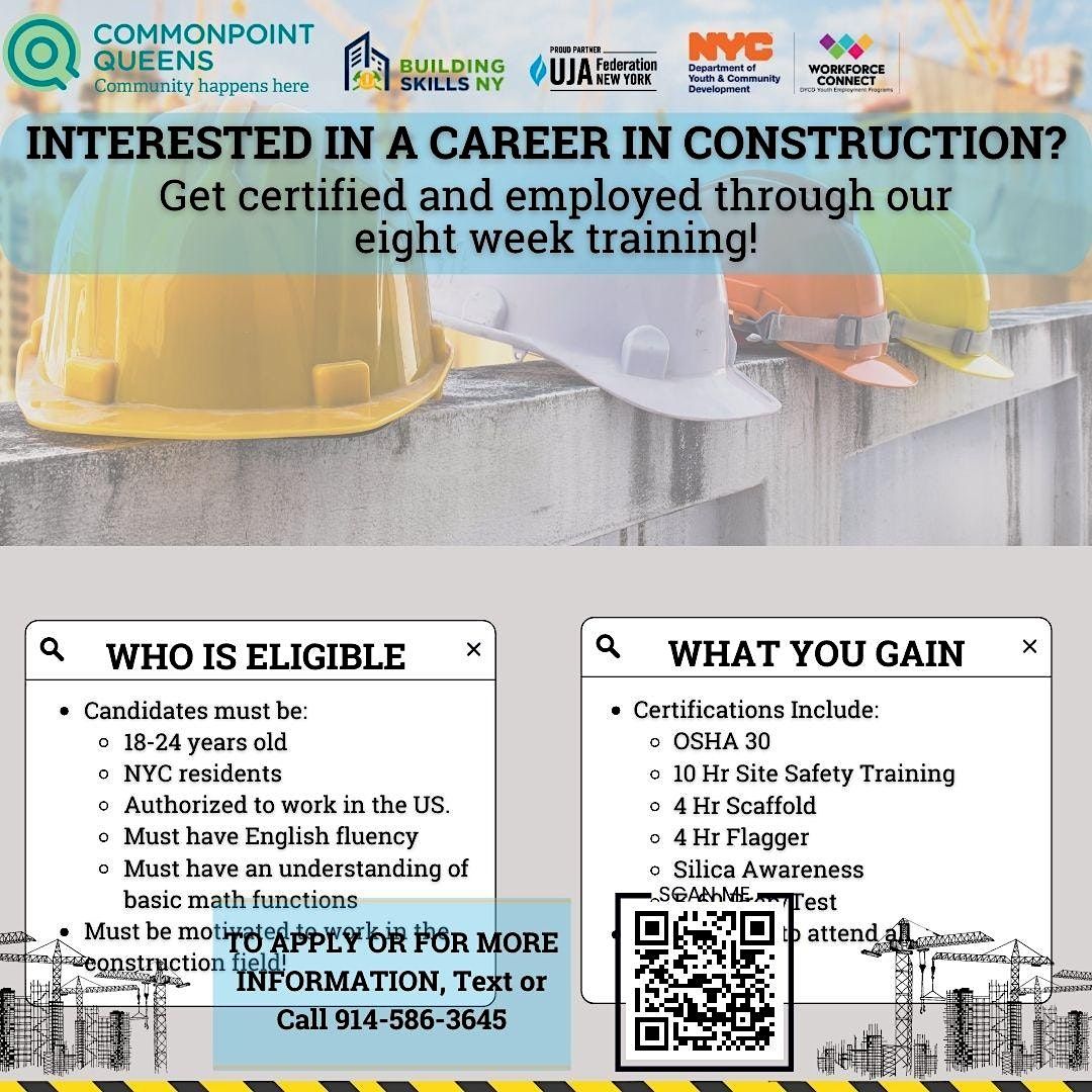AGES 18-24: Join us for an exciting opportunity to learn about construction in a free 8 week training! Whether you're a beginner or have some experience, this training is perfect for anyone interested in the construction industry.
