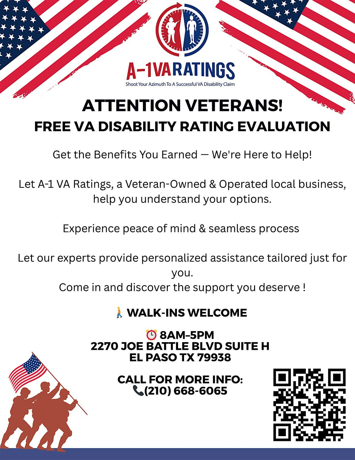 Your Benefits Matter ️! Don’t leave what you’ve earned on the table. A-1 VA Ratings offers FREE VA Disability Rating EvaluationsAbout this Event