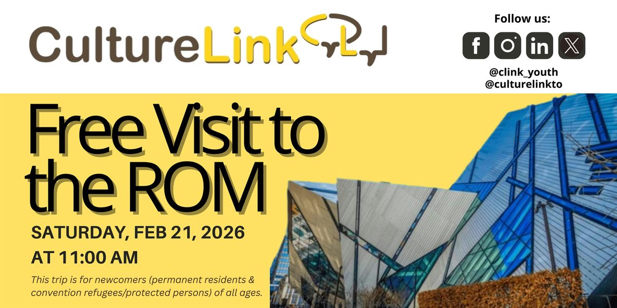 Join us for a free trip to the Royal Ontario Museum (ROM) — one of the largest and most iconic museums in North America! This special visit is open to newcomer individuals (ages 4 to 30) who hold Permanent Resident (PR) or Convention Refugee/Protected Person status.