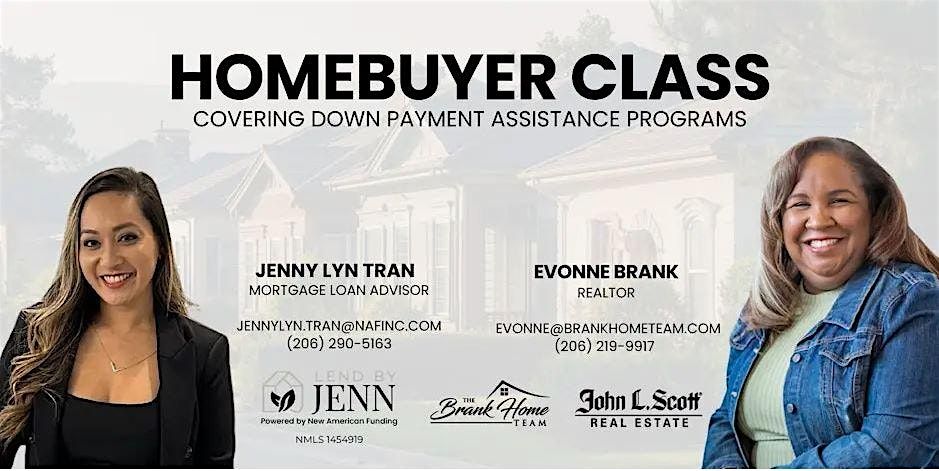 The class also covers down payment assistance programs in WA, including eligibility and how to apply, along with loan options, budgeting, and closing costs.