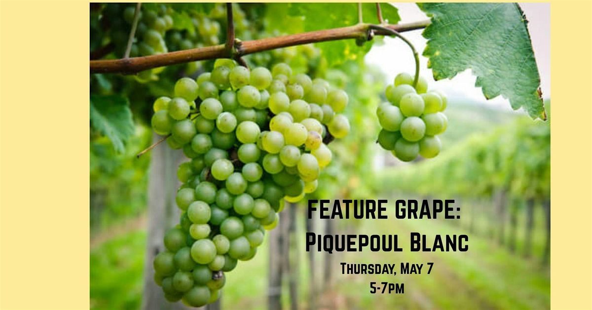 Learn about wine in an easy-going setting. Each month we highlight a grape that you may not know to introduce you to new wine styles to expand your palate. This month's grape is from the South of France and makes wonderful white wines. If you love pinot grigio or sauvignon blanc, come check out a wine called Picpoul de Pinet. Wine pro Alex Correa will be on hand from Grassroots Wine.