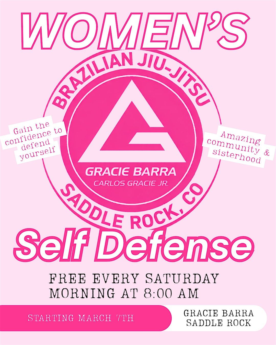 Join our FREE Women’s Self-Defense classes every Saturday in March at 8 AM! Perfect for moms & every woman ready to feel confident.About this Event