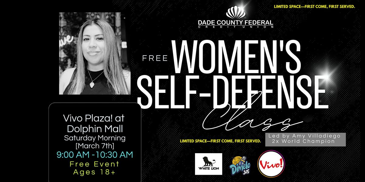 Join us for a powerful, hands-on Women’s Self-Defense Class led by 2x Jiu-Jitsu World Champion Amy Villadiego at Vivo! Dolphin Mall — proudly presented by Dade County Federal Credit Union.