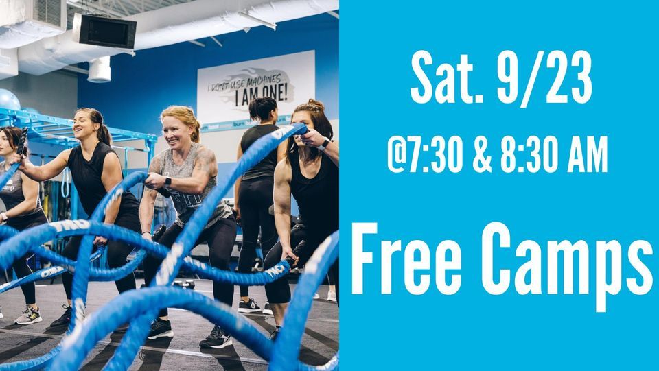 Free for everyone! Come on in for a FREE workout at either 7:30am or 8:30am on Saturday 9/23/2023!! There will be complimentary childwatch available at the 8:30am camp. If you have never been to Burn before but have wanted to try it out - now is your chance!!!