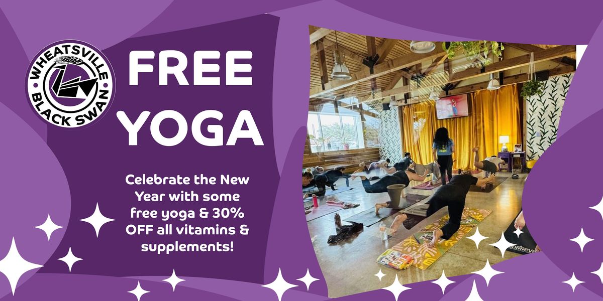 Celebrate the new year and wellness with free yoga lead by Black Swan teacher Cara S. Follow up your class by perusing our Wellness department sale - 30% OFF all Vitamins & Supplements!