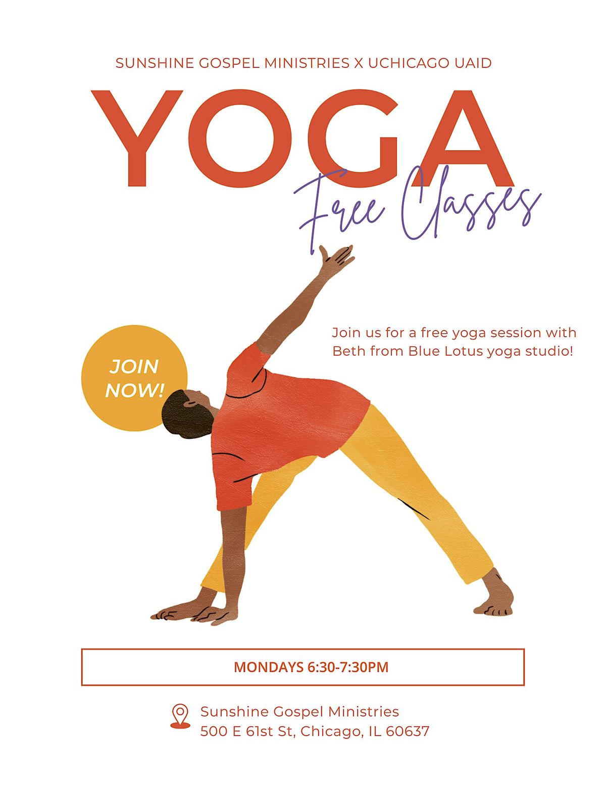 Free yoga workshop at Sunshine Gospel Ministries, with Beth from Blue Lotus Yoga Studios.