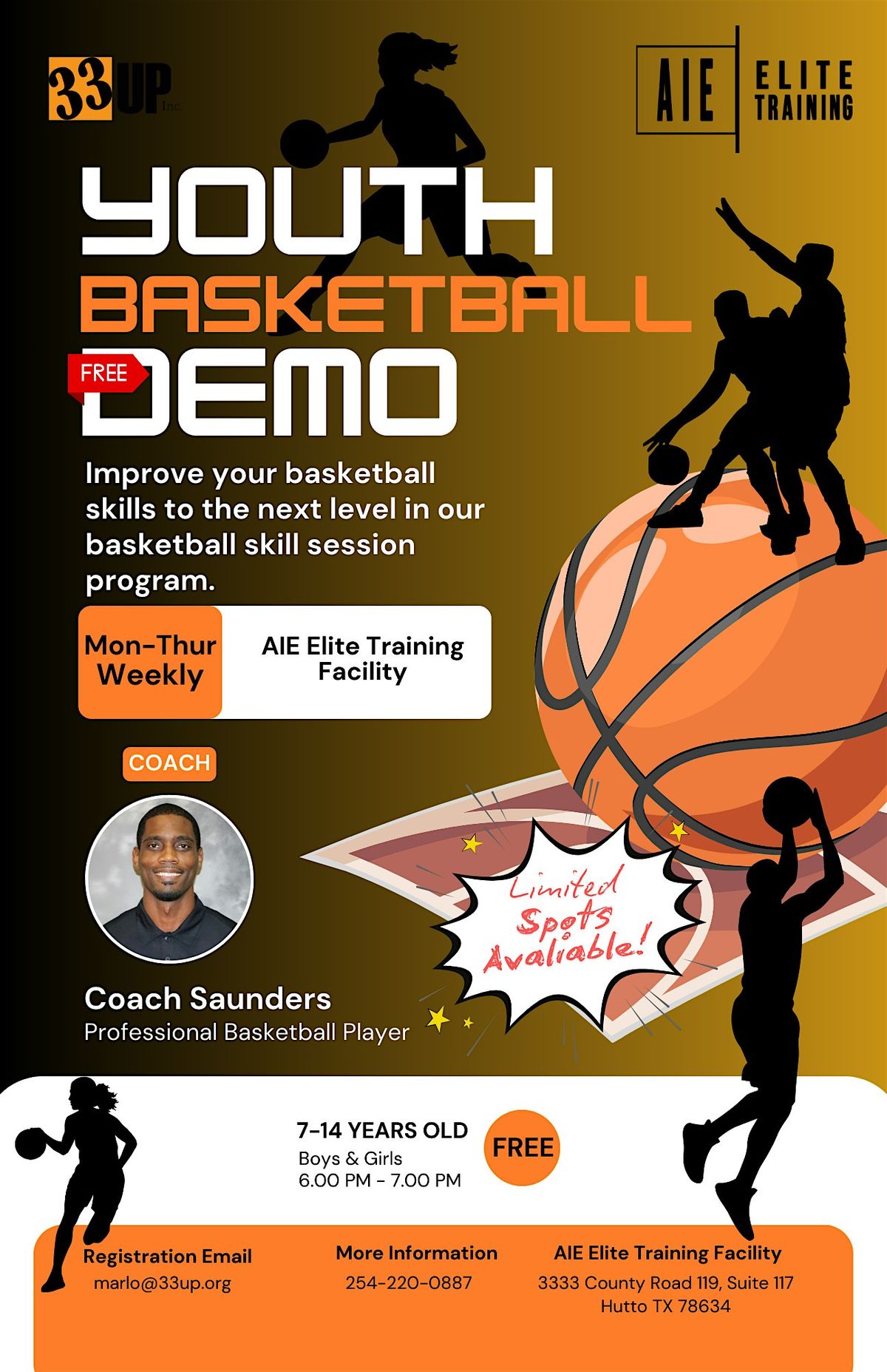 Don’t miss this opportunity to shape your child’s future in basketball. AIE Elite Training has a proven record of helping over 200+ athletes secure college scholarships. We are hosting exclusive development sessions. This program offers advanced training, skill development, and insights that can set your child apart. Spaces are limited—secure your spot today and invest in your child’s success. Come out for your free session! (Only 1 free session per athlete)