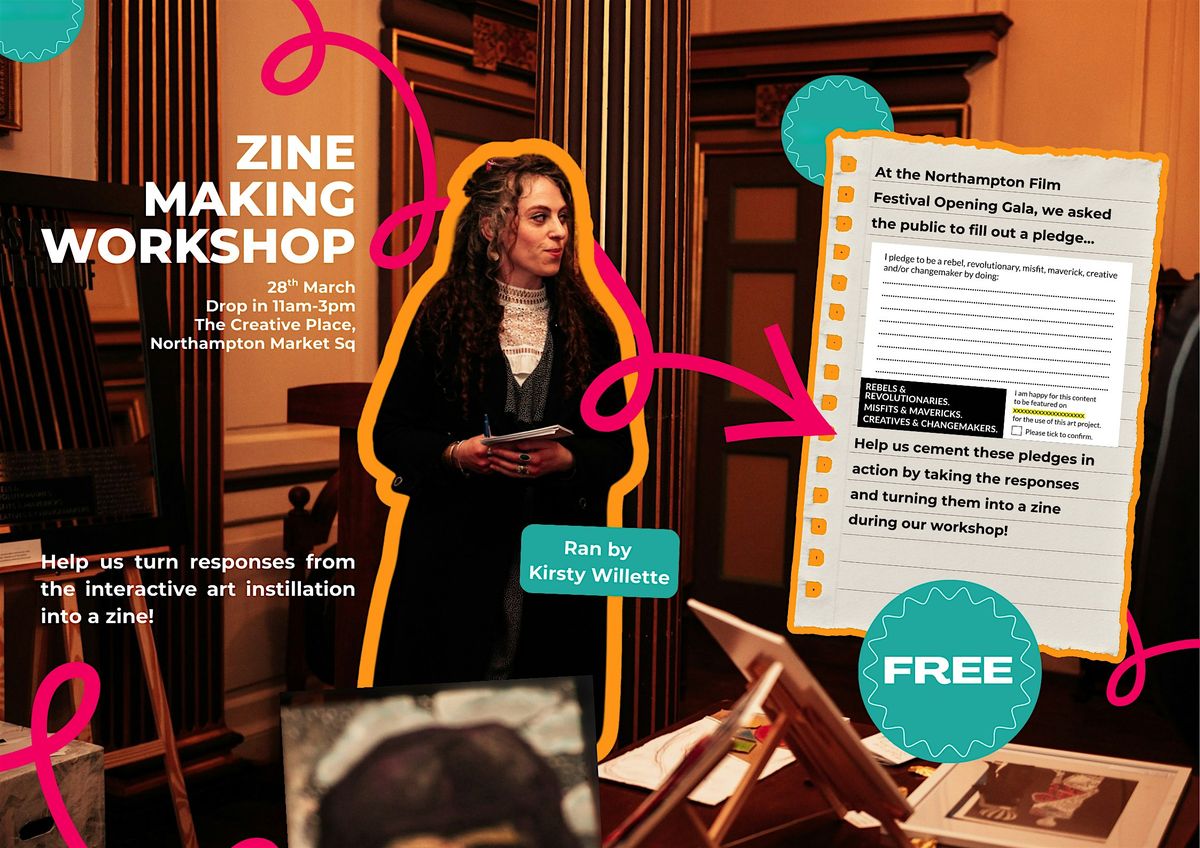 Join us at The Creative Place for a relaxed zine making workshop, where we’ll transform these pledges from our interactive art installation into a collaborative zine. Using the responses left by the public, we’ll cut, collage, design and assemble pages that celebrate creativity, rebellion, and community voices.