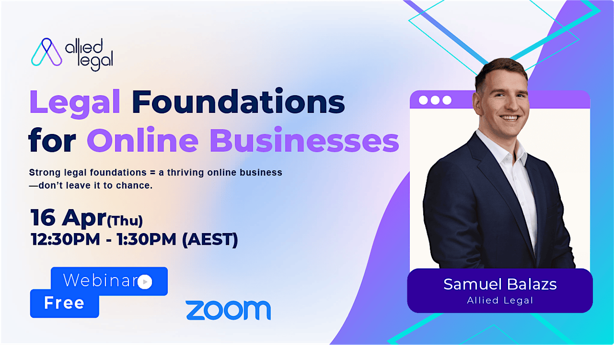 That’s why we’re running “Legal Foundations for Online Businesses” a practical, no-fluff webinar with Samuel Balazs from Allied Legal. You’ll get the insider knowledge you need to make sure your online business is truly protected.