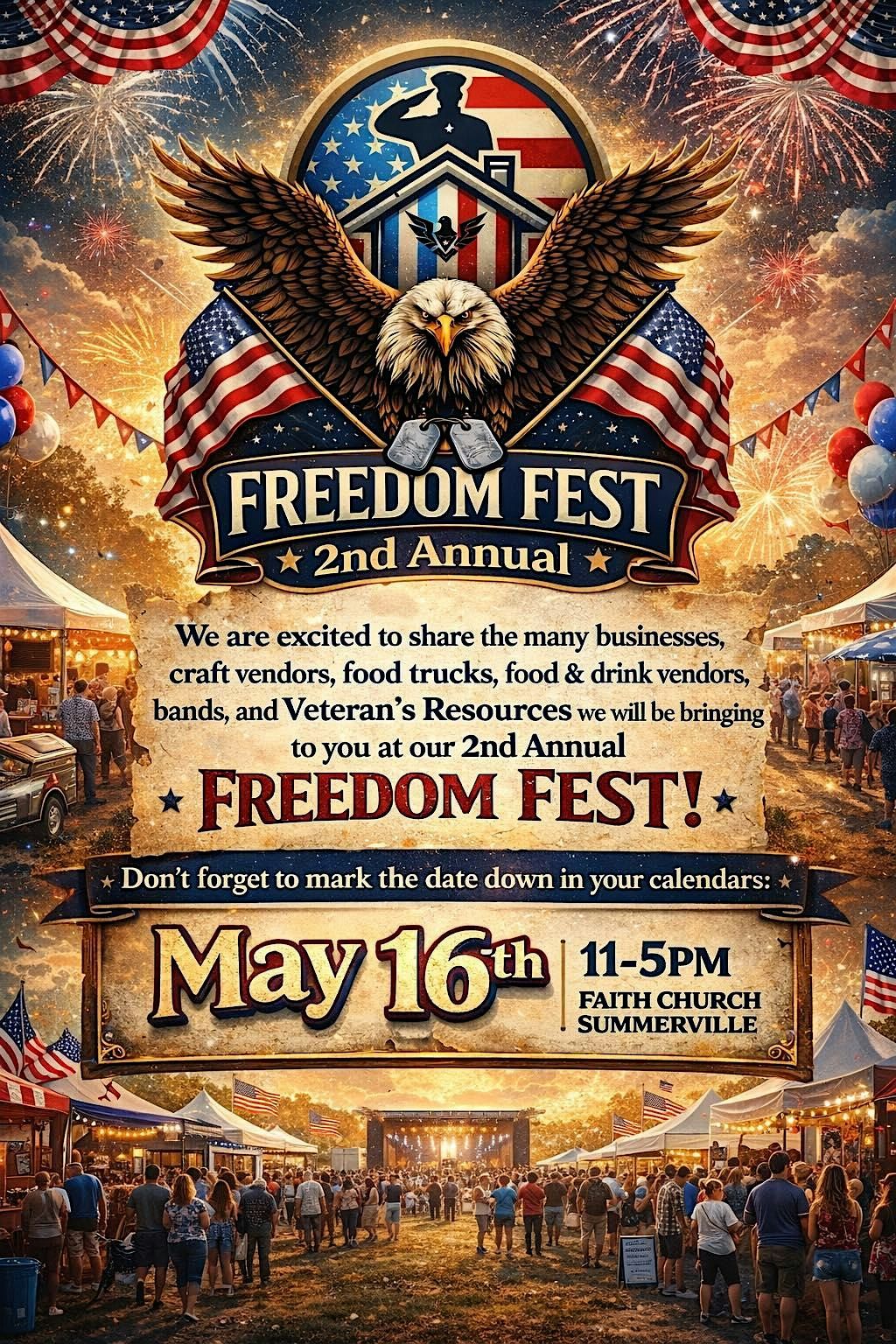 Get ready for Freedom Fest 2026—a high-energy, in-person celebration honoring the courage, service, and sacrifice of our military members, veterans, and first responders. This is more than a festival; it’s a patriotic tribute filled with live music, incredible food, and an atmosphere charged with pride and gratitude.
