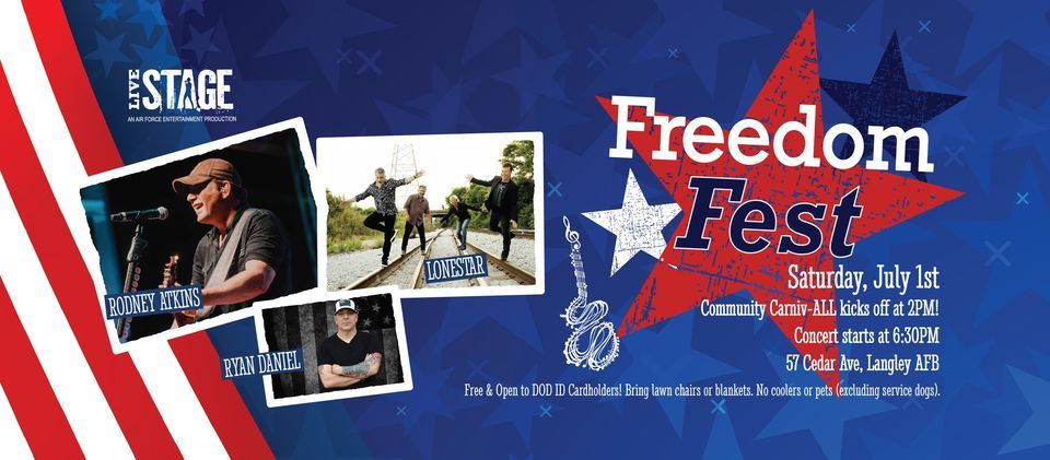This is one of the biggest events of the year! Don't miss it! We will have Carniv-ALL full of fun activities and live music! The concert is brought to you by Air Force Entertainment, where we are proud to present an outstanding lineup of talented performers: Rodney Atkins, Lonestar, and Ryan Daniel.